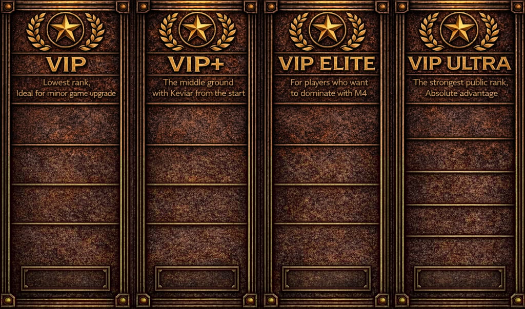 vip elite res (CD: 12 hod): 800x gunpowder,, 125x LQM, 250x wood planks, 250x low grade fuel